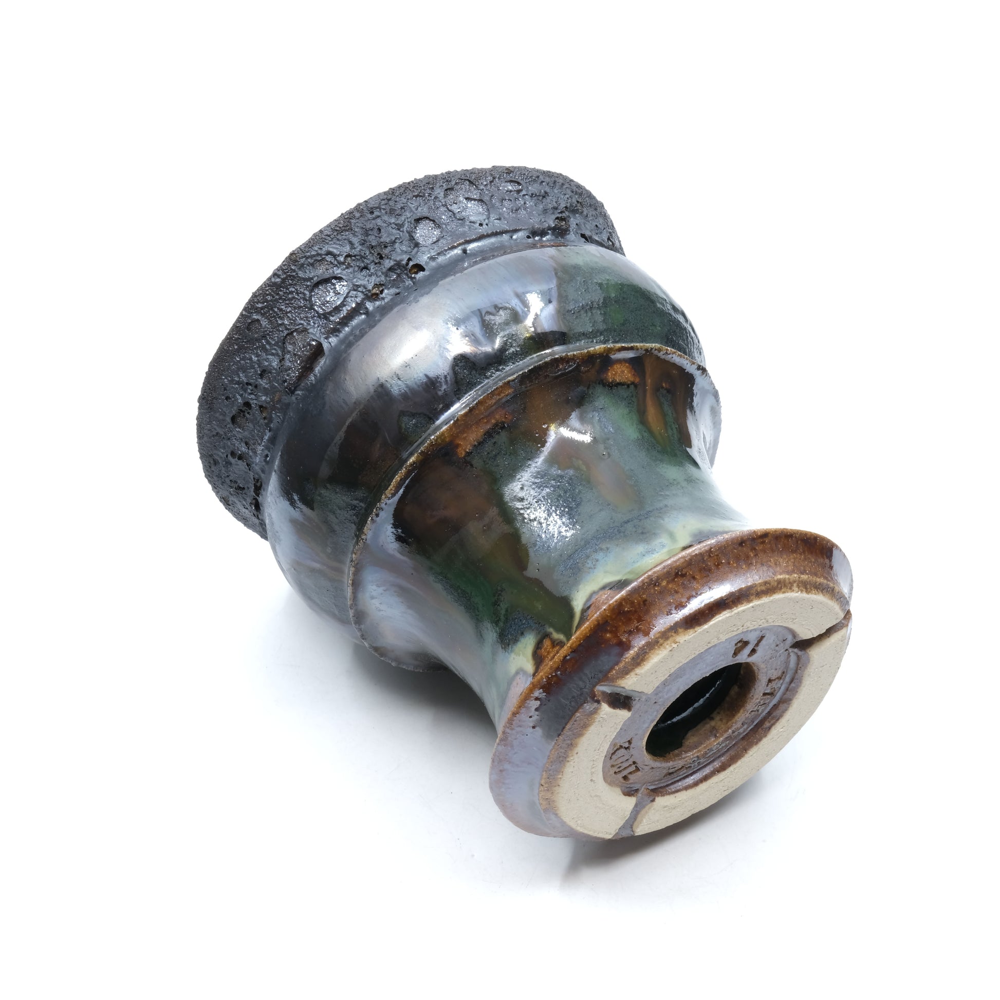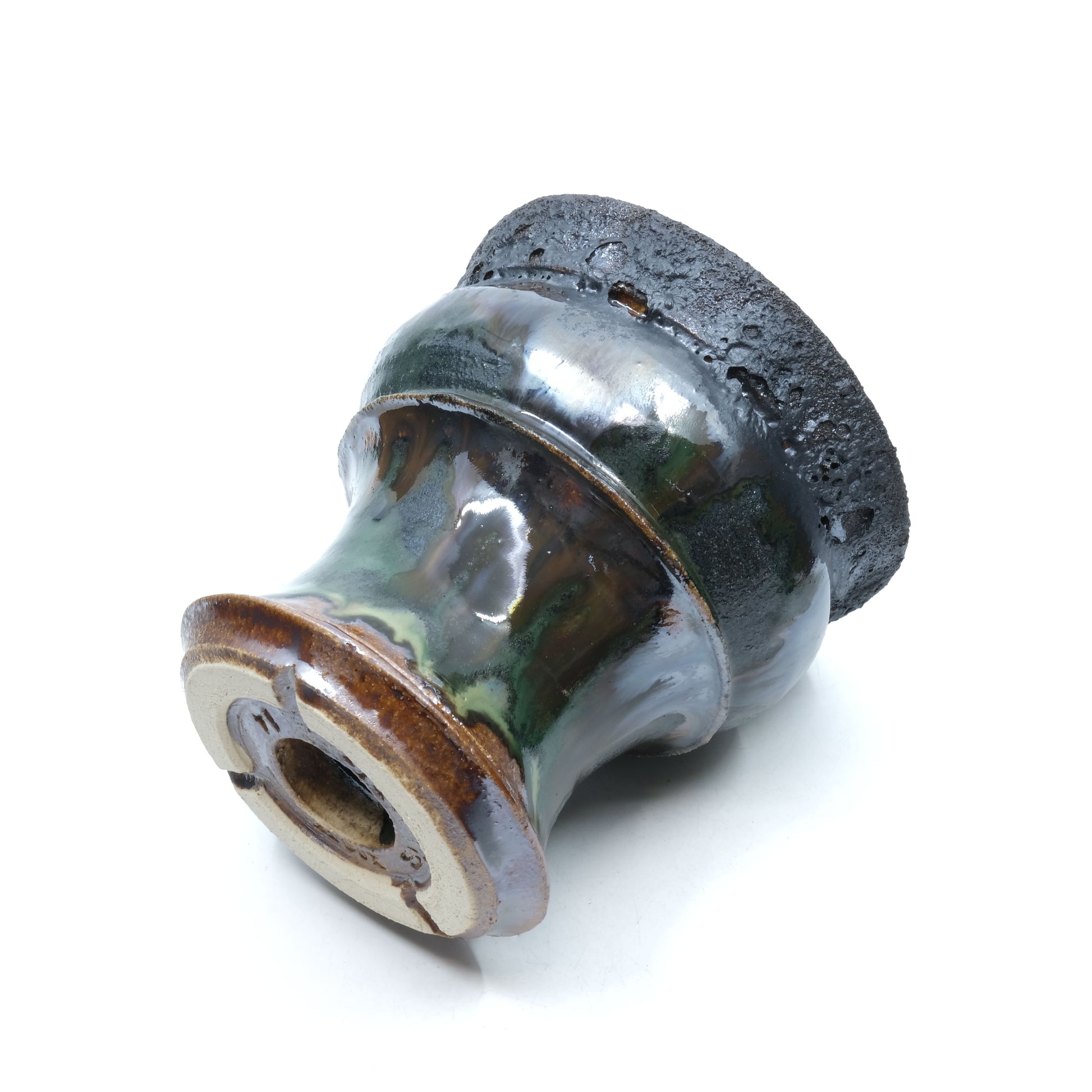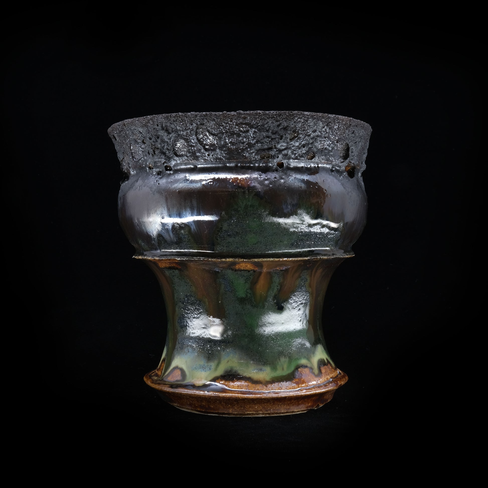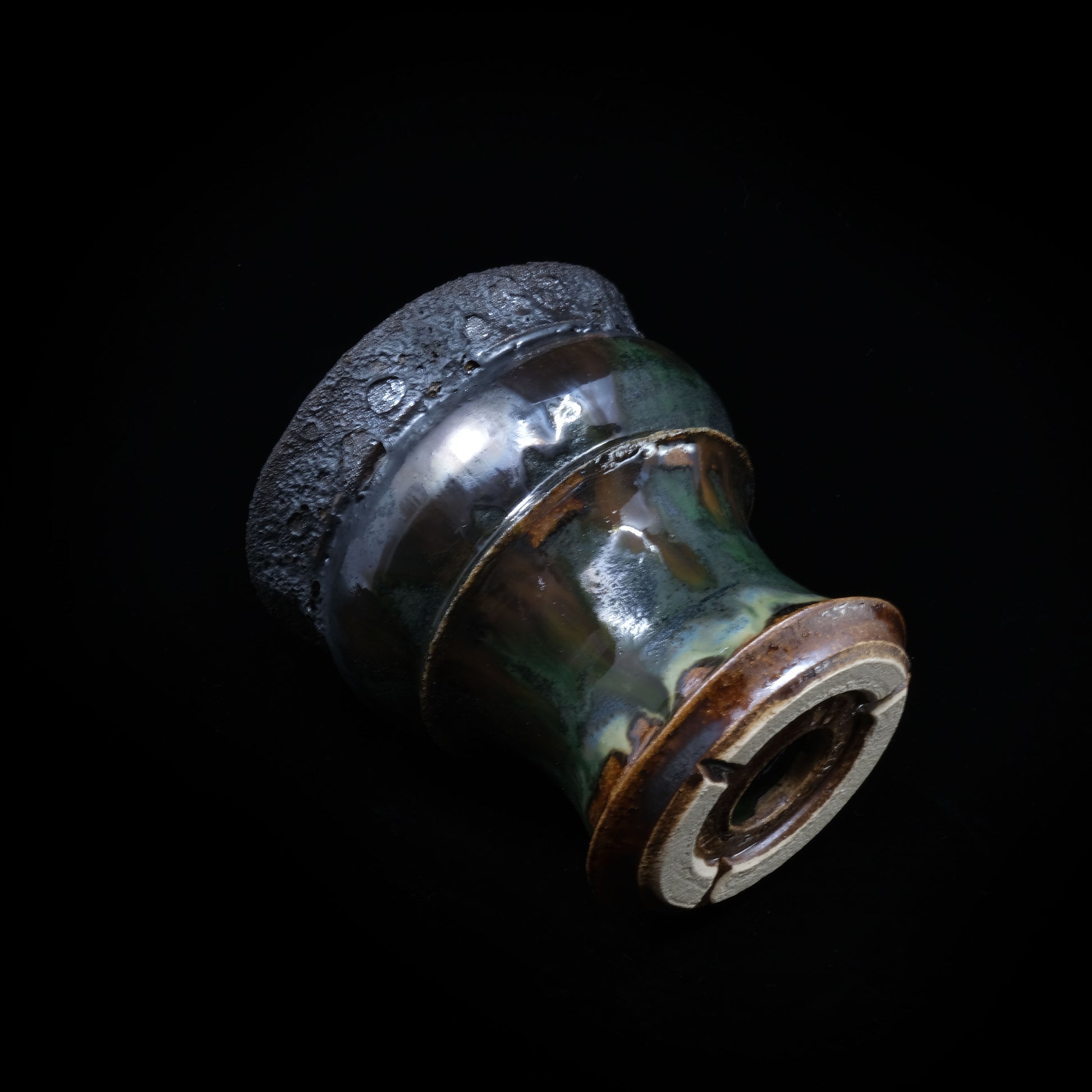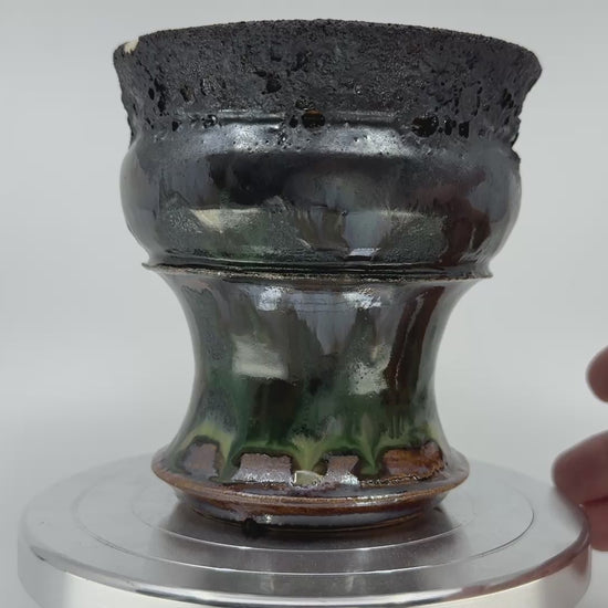 焼締に黒釉を彩る事で獣をイメージして作陶